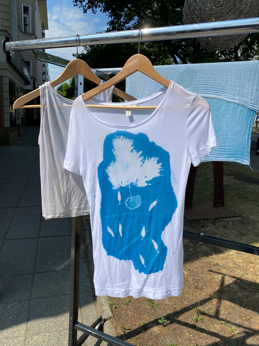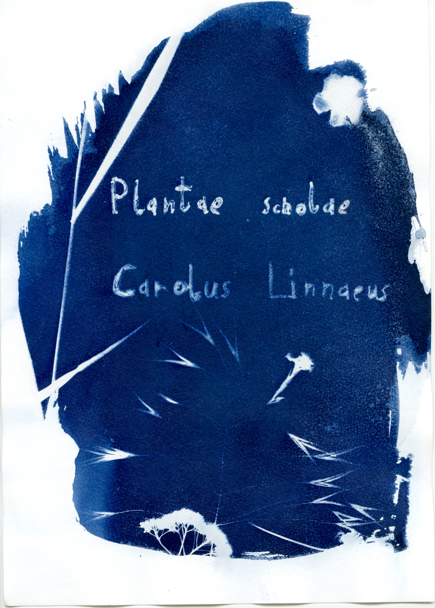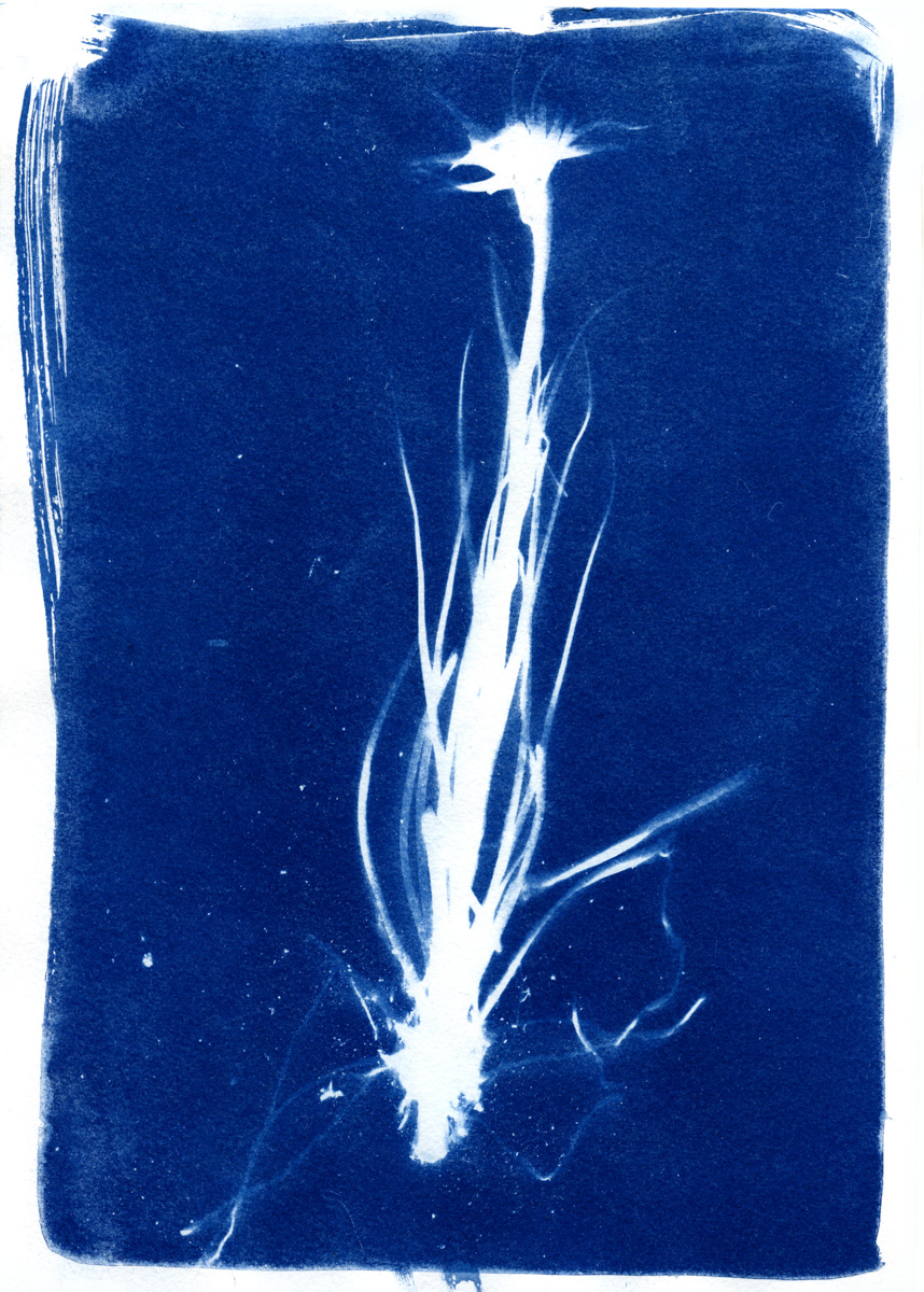 Blaudruck oder Blaupause heisst diese Tehnik auch. Sie ist eine der ältesten Foto-Drucktechniken überhaupt. Sie wurde 1842 von dem Engländer Sir John Herschel patentiert und unter anderem durch die englische Botanikerin Anna Atkins mit ihren schönen Pflanzendrucken bekannt gemacht
