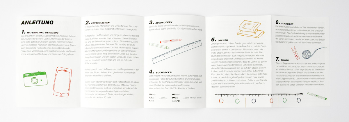 Inspiriert von Peter Millers spielerischem Umgang mit der Fotografie und insbesondere seinen “imagined Landscapes”, ist “Imaginary Thing-People” eine Anleitung für Kinder für eine eigene Foto-Version der bekannten Mix-Klappbücher zum zuhause machen. Das Leporello Heft vebindet Texte zum Künstler und seiner Arbeit mit praktischer Anleitung und lustigen Illustrationen.